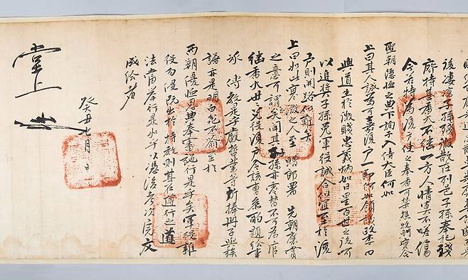 도서관은 기탁자의 동의를 받아 이달 24일부터 19일까지 서울 서초구 도서관 본관 1층 열린마당에서 열리는 특별전에서 완문을 공개할 예정이다. 전시에서는 이광수(1892∼1950)가 집필한 역사 장편소설 ‘단종애사’ 속 단종의 마지막 부분을 필사본(1930년대)과 인쇄본(1935년)으로 함께 보여준다.