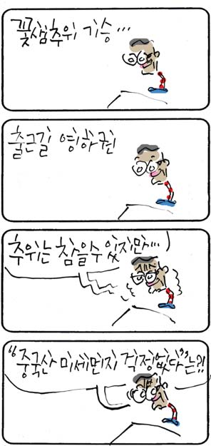 [최경락 꼬투리] 꽃샘추위 기승… 최경락 2026. 3. 18. 20:37 음성으로 듣기 음성재생 설정 이동 통신망에서 음성 재생 시 데이터 요금이 발생할 수 있습니다. 글자 수 10,000자 초과 시 일부만 음성으로 제공합니다. 남성 여성 느림 보통 빠름 음성 재생하기 닫기 음성 재생 중지 번역 설정 번역beta Translated by kaka i 한국어 - English 영어 日本語 일본어 简体中文 중국어 Nederlands 네델란드어 Deutsch 독일어 Русский 러시아어 Malaysia 말레이시아어 বাঙ্গোল ভাষা 벵골어 tiếng Việt 베트남어 Español 스페인어 اللغة العربية 아랍어 Italiano 이탈리아어 bahasa Indonesia 인도네시아어 ภาษาไทย 태국어 Türkçe 튀르키에어 Português 포르투갈어 Français 프랑스어 हिन्दी 힌디어 닫기 번역중 Now in translation 글씨크기 조절하기 글자크기 설정 파란원을 좌우로 움직이시면 글자크기가 변경 됩니다. 가 매우 작은 폰트 작은 폰트 보통 폰트 큰 폰트 매우 큰 폰트 가 이 글자크기로 변경됩니다. (예시) 가장 빠른 뉴스가 있고 다양한 정보, 쌍방향 소통이 숨쉬는 다음뉴스를 만나보세요. 다음뉴스는 국내외 주요이슈와 실시간 속보, 문화생활 및 다양한 분야의 뉴스를 입체적으로 전달하고 있습니다. 닫기 인쇄하기 Copyright © 저작권자 © 중부일보 - 무단전재 및 재배포 금지