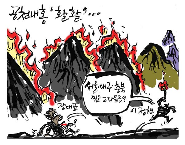 [최경락 만평] 공천 내홍 '활활'… 최경락 2026. 3. 18. 20:44 음성으로 듣기 음성재생 설정 이동 통신망에서 음성 재생 시 데이터 요금이 발생할 수 있습니다. 글자 수 10,000자 초과 시 일부만 음성으로 제공합니다. 남성 여성 느림 보통 빠름 음성 재생하기 닫기 음성 재생 중지 번역 설정 번역beta Translated by kaka i 한국어 - English 영어 日本語 일본어 简体中文 중국어 Nederlands 네델란드어 Deutsch 독일어 Русский 러시아어 Malaysia 말레이시아어 বাঙ্গোল ভাষা 벵골어 tiếng Việt 베트남어 Español 스페인어 اللغة العربية 아랍어 Italiano 이탈리아어 bahasa Indonesia 인도네시아어 ภาษาไทย 태국어 Türkçe 튀르키에어 Português 포르투갈어 Français 프랑스어 हिन्दी 힌디어 닫기 번역중 Now in translation 글씨크기 조절하기 글자크기 설정 파란원을 좌우로 움직이시면 글자크기가 변경 됩니다. 가 매우 작은 폰트 작은 폰트 보통 폰트 큰 폰트 매우 큰 폰트 가 이 글자크기로 변경됩니다. (예시) 가장 빠른 뉴스가 있고 다양한 정보, 쌍방향 소통이 숨쉬는 다음뉴스를 만나보세요. 다음뉴스는 국내외 주요이슈와 실시간 속보, 문화생활 및 다양한 분야의 뉴스를 입체적으로 전달하고 있습니다. 닫기 인쇄하기 Copyright © 저작권자 © 중부일보 - 무단전재 및 재배포 금지