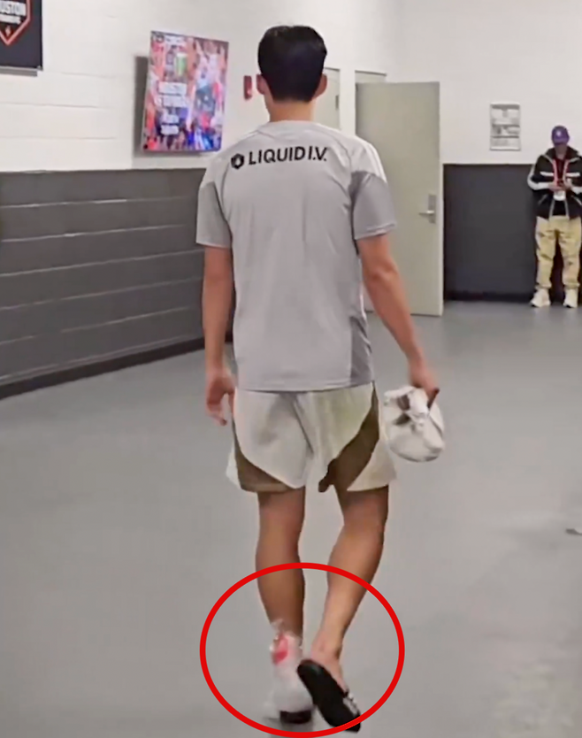 당시 불안의 그림자는 경기 종료 후에도 짙게 드리워졌다. 손흥민이 왼쪽 발목 부위에 두꺼운 아이스팩을 감은 채 이동하는 모습이 포착되며 팬들의 우려를 증폭시켰다. 해당 태클이 단순한 해프닝이 아니라 실제 물리적 충격을 동반한 위험 상황이었음을 방증하는 장면이다.