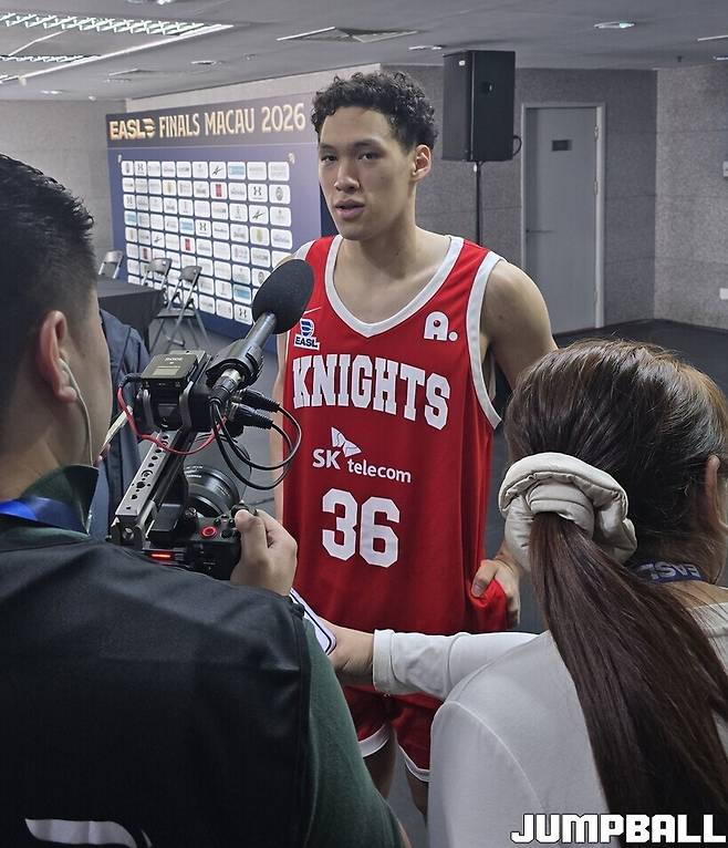 SK의 신인 에디 다니엘(19, 191cm)은 공식 인터뷰가 종료된 후에도 해외 취재진에 둘러싸인 채 추가 인터뷰를 소화했다.