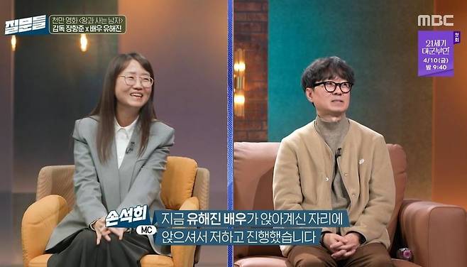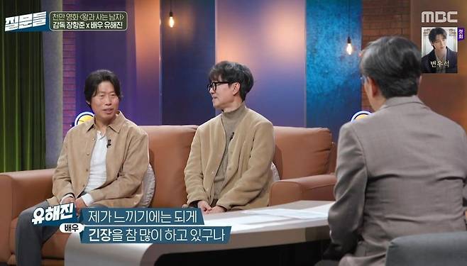18일 방송된 MBC '손석희의 질문들4'에는 장항준 감독과 배우 유해진이 출연해 '왕과 사는 남자'(이하 '왕사남')의 흥행 열풍에 대한 소감과 다양한 비하인드를 전했다.