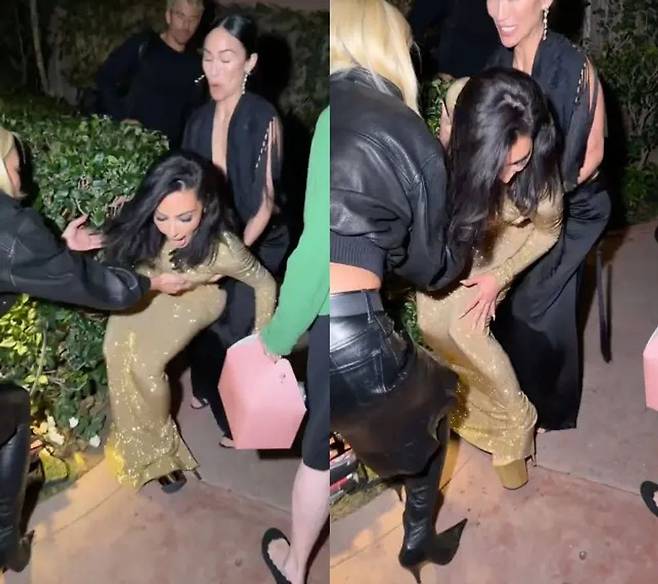 바디 라인이 과감하게 드러나는 구찌 드레스에 플레저 힐을 매치한 카다시안은 팀원들과 함께 인도를 걷던 중 "신발을 더 조여야 할까"라고 묻더니 이내 발을 헛디뎌 앞으로 고꾸라지는 모습을 보였다.