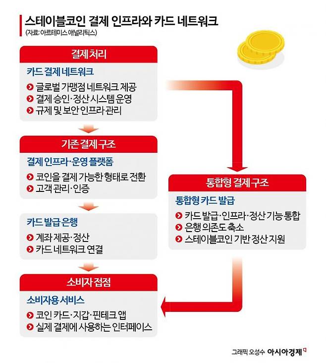 글로벌 카드사와 국내 카드업계가 스테이블코인을 기존 결제망에 편입하려는 움직임이 확산하고 있다. 결제와 정산 구조를 바꿀 수 있는 디지털자산 기반 거래를 카드 네트워크 안으로 끌어들이려는 전략이 뚜렷해지고 있다.