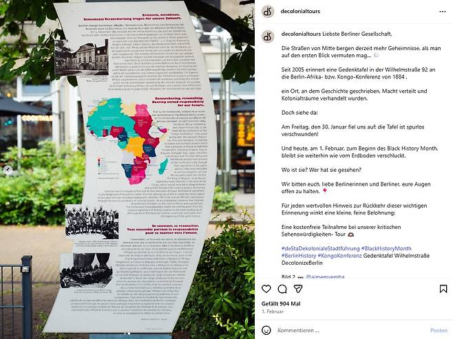 | ▲ 사라진 기념비 탈식민화 운동가가 사라진 기념비의 행방을 베를린시 당국에 문의하지 않고 자신의 인스타그램에서 수배하고 있다. |