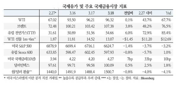 에너지 가격 상승은 분쟁이 종식되더라도 원유 생산 재개가 지연될 가능성과 함께 호르무즈 해협이 재개방된 후에도 실제 공급량이 정상화되기까지는 상당한 시일이 소요될 수 있다는 시장 우려를 반영한 것으로 풀이된다.