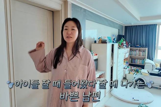 정주리는 "남편의 사촌 동생이 와있는데 정작 우리 남편은 없다"라며 웃음을 터뜨렸다. 옆에 있던 아들 도윤 군은 "난 3일째 아빠를 못 본 것 같다"라고 덧붙여 폭소를 자아냈다. 정주리는 "그렇게 말하면 오해하겠다. 그런 게 아니라 지금 남편이 할 게 너무 많아서 사무실에 있다. 아이들 잘 때 들어와서 잘 때 나간다"라고 설명했다.