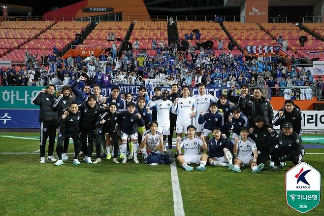 울산은 18일 제주월드컵경기장에서 열린 '하나은행 K리그1 2026' 4라운드 원정 경기에서 제주 SK를 2-0으로 꺾었다.
