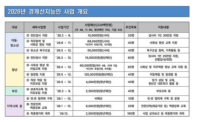 | ▲ 2026년 부산광역시 경계선지능인 사업 개요. |