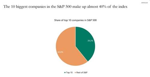 이미 S&P500지수는 상위 10개 종목이 시가총액 전체의 약 40%를 차지하고 있다. 이는 대공황 이후 가장 대형주 비중이 높은 것이다.