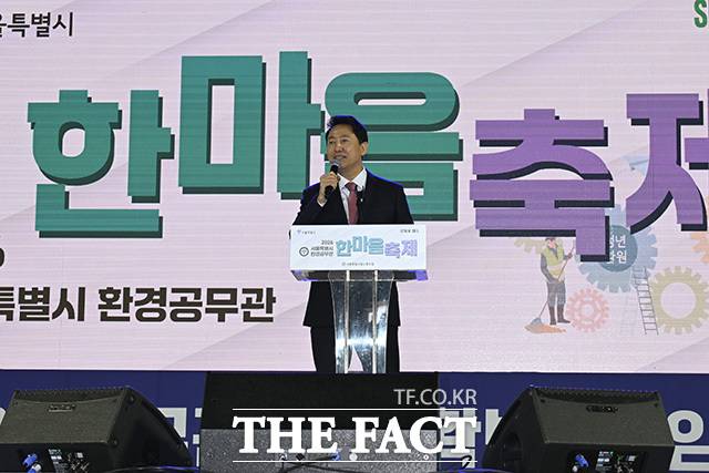환경공무관 약 2000명이 모인 '환경공무관 한마음 축제'에는 오 시장을 비롯해 정청래 더불어민주당 대표, 서울시장 선거에 출마를 선언한 더불어민주당 정원오, 전현희, 김영배 예비후보가 참석했다.