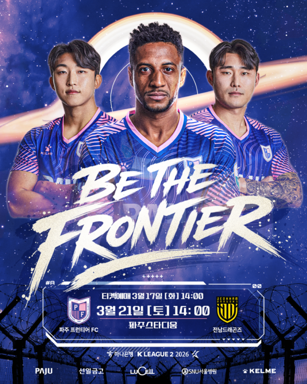 19일 파주는 "오는 21일 열리는 하나은행 K리그2 2026 4라운드 전남드래곤즈와의 홈경기에서 구단의 상징성과 역사를 담은 공식 오프닝 퍼포먼스 'INTO THE COSMOS'를 선보인다"라고 밝혔다.