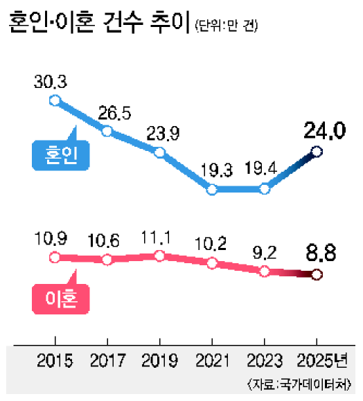국가데이터처는 19일 이런 내용의 ‘2025년 혼인·이혼 통계’를 발표했다.