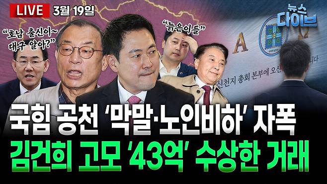민주 "검찰 시대 끝낸다" 중수청·공소청법 오늘 본회의...국힘 반발 / 장동혁·이정현 '마이웨이' 공천...당내 갈등 폭발 / 공천 갈등에 '막말'까지...지켜야 할 선 무너진 국힘 / 몰랐다더니 입금 내역에 '김건희 고모'...신천지 간부 '43억' 수상한 거래 / 쿠팡 이용자 다시 늘었다...집단 소송 진행 상황은? 오늘 (3월 19일) 뉴스 다이브 많은 시청바랍니다.
