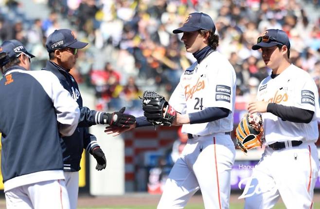 △한화: 오재원(중견수)~요나단 페라자(우익수)~문현빈(좌익수)~노시환(3루수)~강백호(지명타자)~채은성(1루수)~하주석(2루수)~허인서(포수)~심우준(유격수), 선발투수 화이트