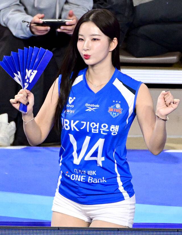 [마이데일리 = 화성 유진형 기자] IBK기업은행 김진아 치어리더가 30일 경기도 화성실내체육관에서 열린 '진에어 2025-2026 V리그' IBK기업은행과 한국도로공사의 경기에서 응원하고 있다.