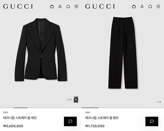 구찌를 택한 건 3년 만입니다. 2023년 주주총회에서도 구찌 재킷과 금장 벨트를 착용해 관심을 받았죠. 570만원짜리 재킷과 200만원대 스커트를 매치했습니다.