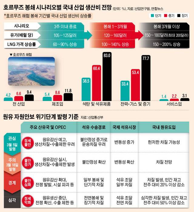 호르무즈 해협 봉쇄 3주만 지속되도, 제조업 생산비 5.4%↑