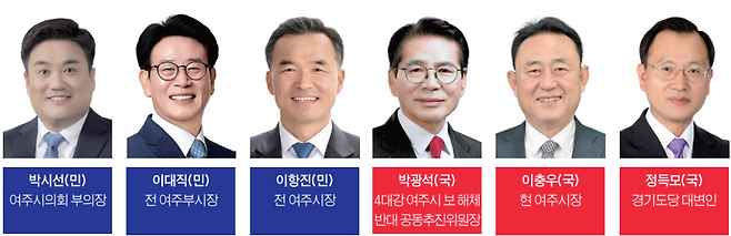 더불어민주당 역시 이항진 전 여주시장과 이대직 전 여주부시장, 박시선 여주시의회 부의장 등 중량감 있는 인사 3명이 출사표를 던졌다.
