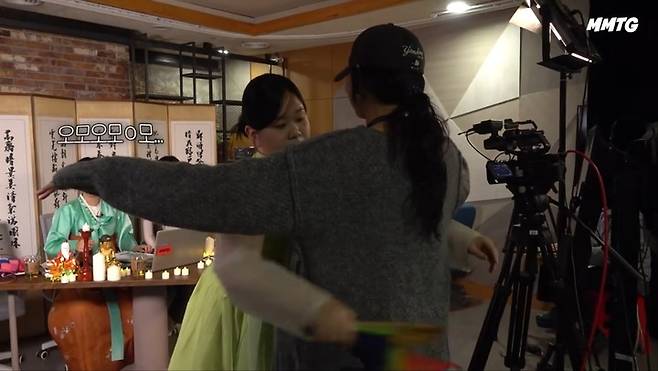 결국 이소빈은 오방기를 꺼내 들고 현장을 돌며 '부정을 걷어내는' 의식을 진행했다. 그러자 이후 마이크 상태가 정상으로 돌아오며 소리가 깨끗하게 송출됐다.
