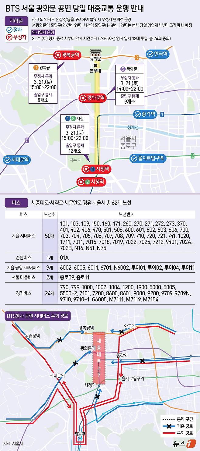 [그래픽] BTS 서울 광화문 공연 당일 대중교통 운행 안내