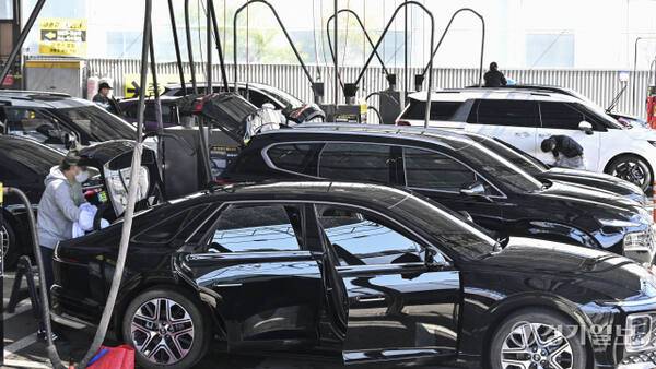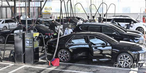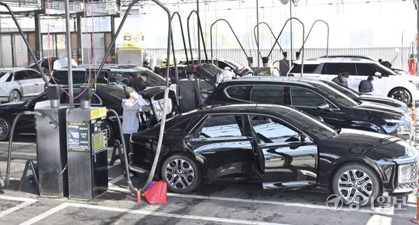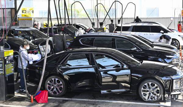 맑은하늘 아래…미세먼지 사라지자 세차장 ‘북적’ [포토뉴스]