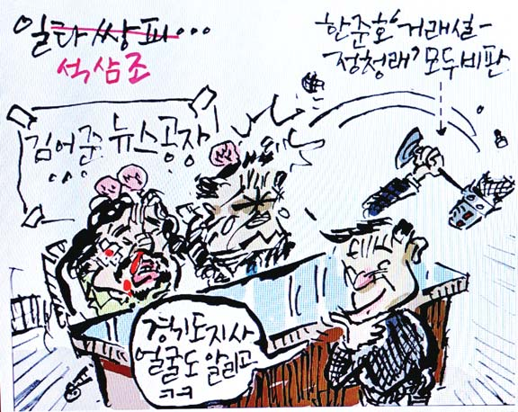 [최경락 만평] 석삼조… 최경락 2026. 3. 19. 20:42 음성으로 듣기 음성재생 설정 이동 통신망에서 음성 재생 시 데이터 요금이 발생할 수 있습니다. 글자 수 10,000자 초과 시 일부만 음성으로 제공합니다. 남성 여성 느림 보통 빠름 음성 재생하기 닫기 음성 재생 중지 번역 설정 번역beta Translated by kaka i 한국어 - English 영어 日本語 일본어 简体中文 중국어 Nederlands 네델란드어 Deutsch 독일어 Русский 러시아어 Malaysia 말레이시아어 বাঙ্গোল ভাষা 벵골어 tiếng Việt 베트남어 Español 스페인어 اللغة العربية 아랍어 Italiano 이탈리아어 bahasa Indonesia 인도네시아어 ภาษาไทย 태국어 Türkçe 튀르키에어 Português 포르투갈어 Français 프랑스어 हिन्दी 힌디어 닫기 번역중 Now in translation 글씨크기 조절하기 글자크기 설정 파란원을 좌우로 움직이시면 글자크기가 변경 됩니다. 가 매우 작은 폰트 작은 폰트 보통 폰트 큰 폰트 매우 큰 폰트 가 이 글자크기로 변경됩니다. (예시) 가장 빠른 뉴스가 있고 다양한 정보, 쌍방향 소통이 숨쉬는 다음뉴스를 만나보세요. 다음뉴스는 국내외 주요이슈와 실시간 속보, 문화생활 및 다양한 분야의 뉴스를 입체적으로 전달하고 있습니다. 닫기 인쇄하기 Copyright © 저작권자 © 중부일보 - 무단전재 및 재배포 금지