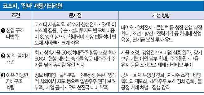 이남우 한국기업거버넌스포럼 회장은 “지수 부양 논쟁보다 지배구조 개선을 통해 구조적인 밸류에이션 디스카운트를 해소하는 게 정공법”이라고 진단했다.