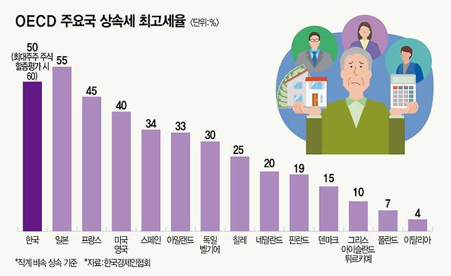 코리아 디스카운트를 설명할 때 빠지지 않는 대목이 상속·증여세다. 한국의 명목 최고 상속세율은 50%다. 최대주주 할증까지 더하면 실질 부담은 60%까지 올라간다. 상속·증여세 완화가 곧장 주가 상승으로 이어진다는 실증이 부족하다는 시각이 있지만, 시장에서는 과도한 세 부담을 그대로 두고는 주주환원 정책 역시 ‘반쪽짜리’로 전락할 수 있다고 지적한다.