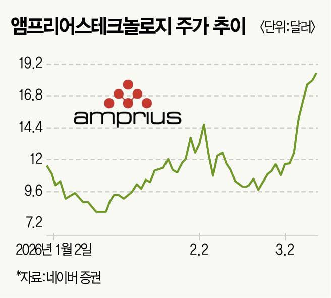 이 같은 흐름에서 미국 배터리 기업 앰프리어스테크놀로지에 이목이 쏠린다. 실리콘 음극재 기반 고에너지 밀도 배터리를 앞세워 드론·항공·우주 시장을 공략하는 업체다. 고성능 배터리가 필수인 국방용 드론 시장이 확대될수록 직접적인 수혜를 볼 가능성이 높다는 평가가 나온다.