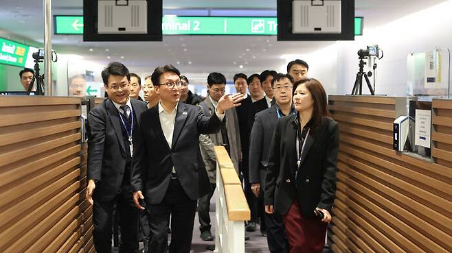 김민석 총리는 오늘(19일) 오후, 김정도 인천공항출입국·외국인청장으로부터 준비 상황을 보고 받고, 입국 심사장 상황 및 자동입국심사시스템 등을 살펴봤습니다.