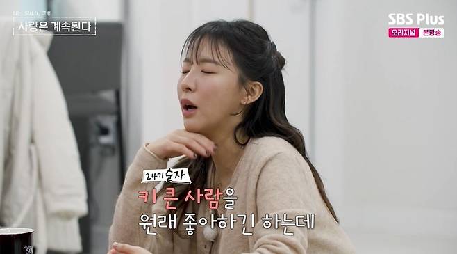 그런 가운데 18기 영호는 24기 순자에 관해 소개하며 "항간의 오해로 키 커야지만 만날 수 있다고 소문났는데, 사람의 매력을 보는 경우가 많다고 한다. 근데 욕심을 좀 부리면 '그래도 좀 컸으면 좋겠다' 정도"라고 말해주었다.