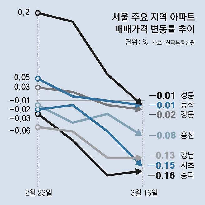 성동-동작구도 하락 전환… 집값 내림세, 한강벨트로 번졌다
