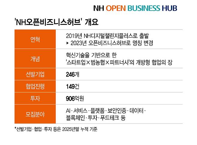 NH오픈비즈니스허브는 다양한 분야 스타트업의 성장가속기 역할을 톡톡히 하고 있다는 평가를 받는다. 2019년 스타트업 발굴·육성에 초점을 맞춘 농협은행의 오픈이노베이션 프로그램(옛 NH디지털챌린지플러스)이 2023년 협업 중심으로 콘셉트를 바꾸면서 나타난 변화다.