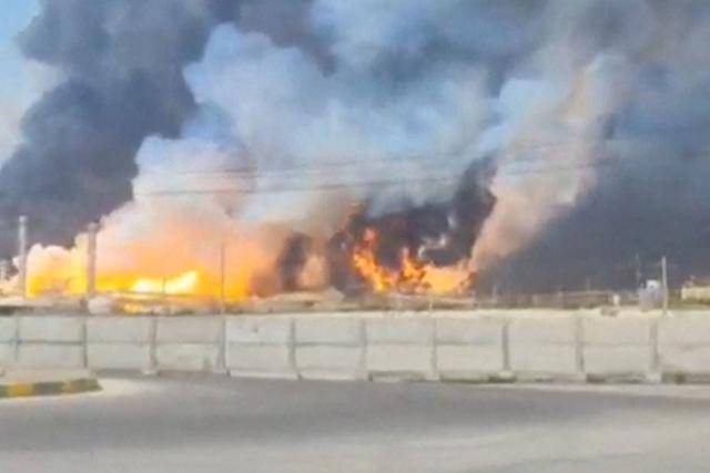 이란 부셰르주 사우스파르스 가스전이 18일 이스라엘의 폭격으로 불길에 휩싸여 연기를 내뿜고 있는 모습. 한 사회관계망서비스(SNS)에 올라온 영상을 캡처한 화면이다. 로이터 연합뉴스