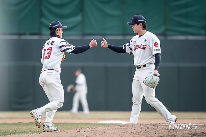 첫 타자 안재석을 상대로 최준용은 초구부터 149km/h 패스트볼을 한가운데로 뿌렸다. 직구만 연달아 3개를 던진 최준용은 안재석을 중견수 플라이로 잡아냈다. 이어 박준순에게는 속구 제구가 높게 됐지만, 유격수 전민재의 호수비 속에 아웃카운트를 올렸다.