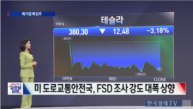 미국 도로교통안전국(NHTSA)이 전기차 업체 테슬라의 대표적 기능인 '완전자율주행(FSD)' 시스템에 대한 조사 강도를 높이면서 주가가 하락했다.