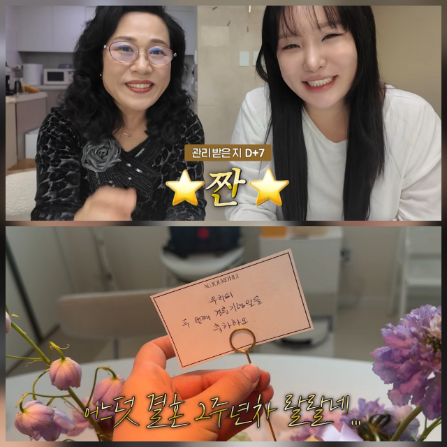 일상 속 변화도 함께 공개됐다. 결혼기념일을 맞아 남편에게 꽃을 선물받는 모습부터, 스케줄을 소화하며 점차 자연스러워지는 얼굴까지 담기며 회복 과정을 그대로 보여줬다.