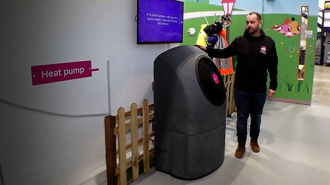 기술혁신 디렉터 콜린 토머스가 구조를 설명했다. 지붕의 태양광 패널이 전기를 만든다. 배터리에 저장한다. 난방은 히트펌프로 전기화 돼 있다. 여기까지는 다른 곳에서도 한다. 차이는 그다음이다.
