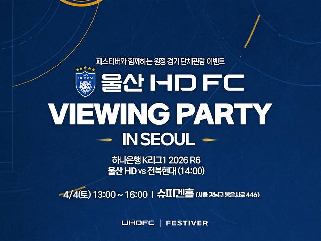 울산과 페스티버는 4월 4일 오후 2시에 열리는 전북현대와 리그 원정 경기에 맞춰 서울 강남구 소재 복합문화공간 ‘슈피겐홀’에서 ‘서울 뷰잉 파티’를 연다.