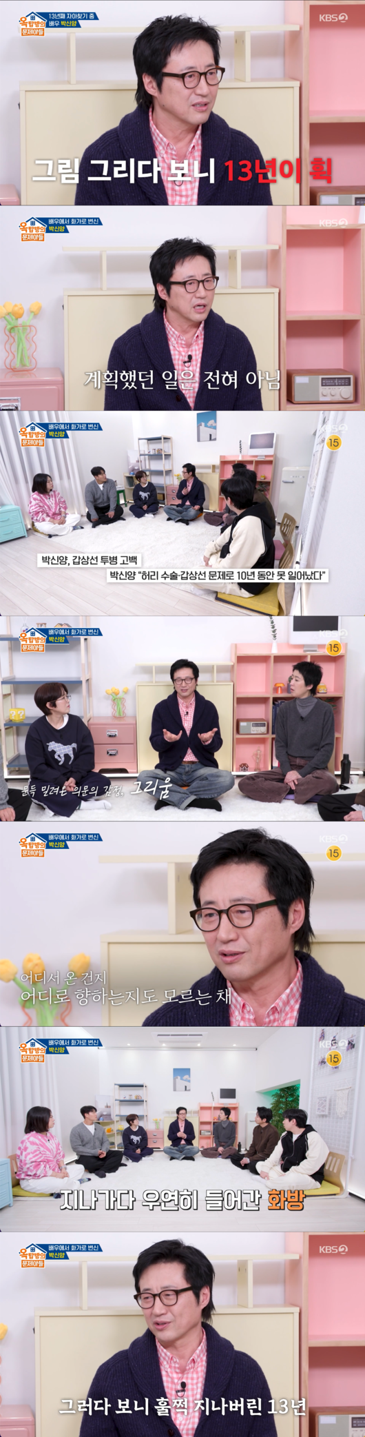 '옥탑방의 문제아들' 배우 박신양이 지난 13년간 연기 현장이 아닌 화실에서 홀로 보냈던 고독한 시간과 화가로 전향하게 된 결정적인 계기를 고백했다.