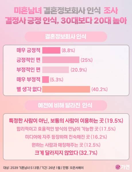 가연, '결혼정보회사 인식' 조사 결과 발표...20대 긍정 평가 가장 높아