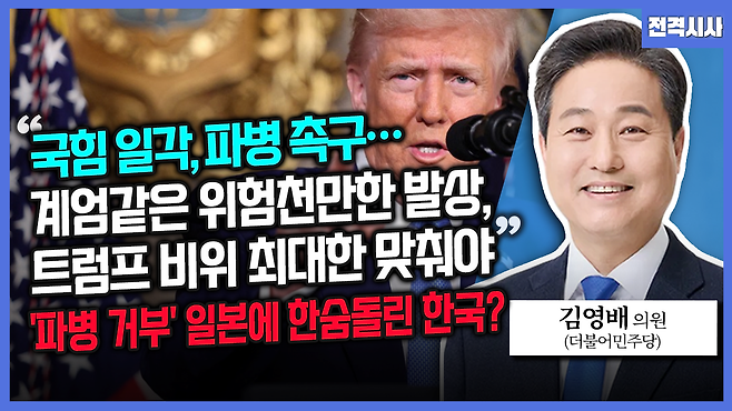 김영배 더불어민주당 의원 - “국힘 일각, 파병 촉구…계엄같은 위험천만한 발상, 트럼프 비위 최대한 맞춰야” ‘파병 거부’ 일본에 한숨돌린 한국?