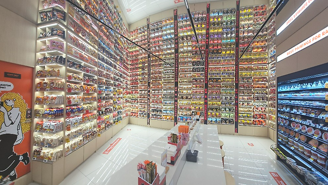 외국인 관광객이 K-영화·드라마 속 라면을 향하는 트렌드를 반영했다. 밝은 오렌지빛 건물 외곽에 설치된 곡선형 오브제도 라면의 면발을 연상시켰다.