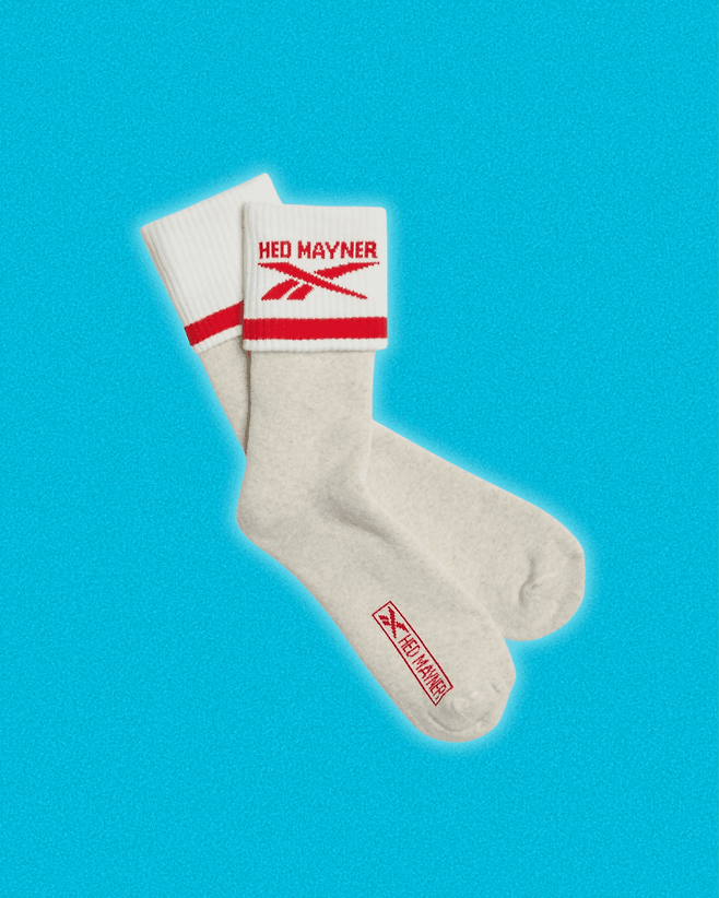평소 캐주얼한 티셔츠나 운동복으로 사계절을 나는 이들은 리복 x 헤드 메이너의 미드 삭스를 눈여겨볼 것. 리복의 스포티한 감각이 돋보이는 로고 디테일이 시선을 사로잡는다. 취향에 따라 접지 않고 미니멀하게, 혹은 접어서 스포티하게 연출할 수 있다.