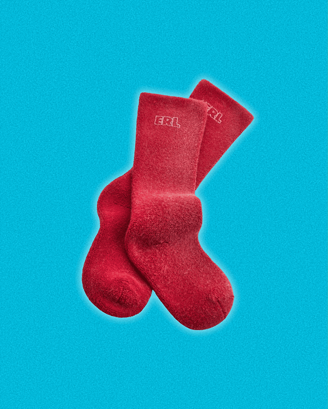 ERL의 레드 소프트 삭스는 어느 룩에나 생기를 불어넣어 준다. 특히 수트와 함께 매치했을 때 상반된 매력을 발산해 센스와 위트를 뽐낼 수 있을 것. 스니커즈와 로퍼 등 다양한 신발과 스스럼없이 어울려서 간편하게 근사한 룩을 완성해준다.