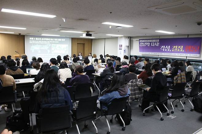 18일 수요일 오후 7시 30분 대방역에 위치한 서울여성플라자에서 젠더폭력해결페미니스트연대(아래 '페미연대')가 주최하고 서울여성회와 서울여성회 페미니스트 대학생 연합(아래 '서페대연')이 주관한 강남역 여성살해사건 10주기 토론회 <강남역! 다시! 각성, 결집, 행동!>이 개최되었다.