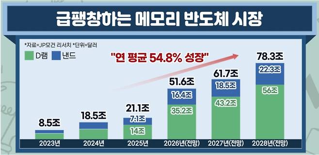 또한 JP모건에 따르면 메모리 반도체(D램, 낸드플래시) 시장 성장률 전망치를 올해 2월 기준으로 작년 예상치보다 약 40% 상향 조정했습니다. 모든 리서치 기관이 눈높이를 높이고 있다는 것은 이 산업이 장기적으로 꾸준히 성장할 것이라는 강력한 증거입니다."