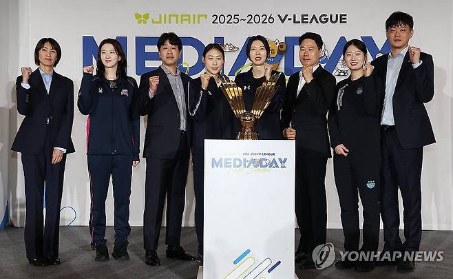 한국배구연맹이 개최한 포스트시즌 미디어데이에서 남녀부 8개 팀은 저마다의 구호와 자신감을 앞세워 ‘봄 배구’ 출발을 알렸다.