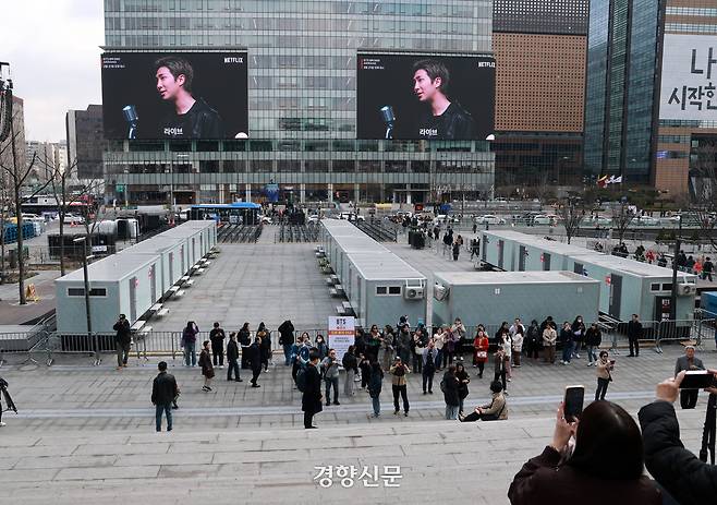 BTS 컴백 공연 하루 앞…북적이는 광화문광장 통제 본격화 [현장 화보]